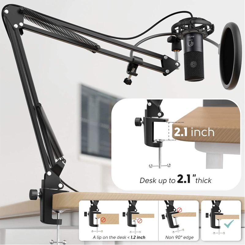 • La extensión máxima del soporte de brazo es de alrededor de 76 cm, que puede ir desde el costado de su escritorio hasta el frente de su boca perfectamente. No es necesario que se incline hacia un lado para hablar.